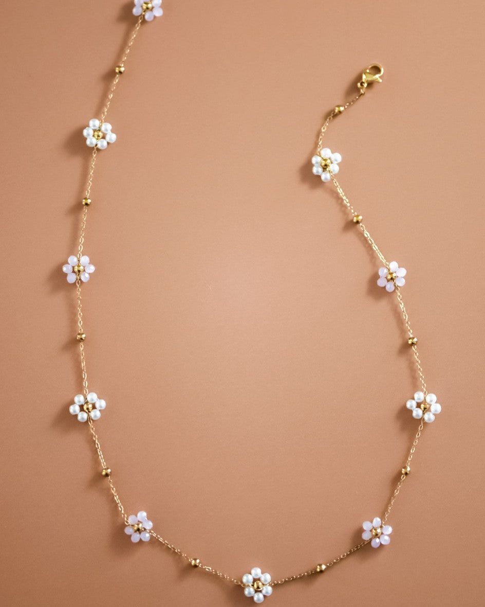 Elevate your everyday look with our Pretty Petals Necklace. Delicately crafted with dainty beads, this necklace features a charming flower design that adds a subtle touch of elegance to any outfit. Make a statement and exude confidence with this must-have accessory!