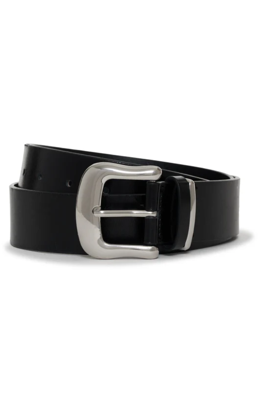 Elevate your style with the Sanctuary Rowan Belt, crafted from smooth black leather for a timeless look. Its shiny silver buckle adds a bold, polished touch, making it perfect for both casual and formal outfits. Durable and versatile, this belt brings effortless sophistication to your wardrobe every day.