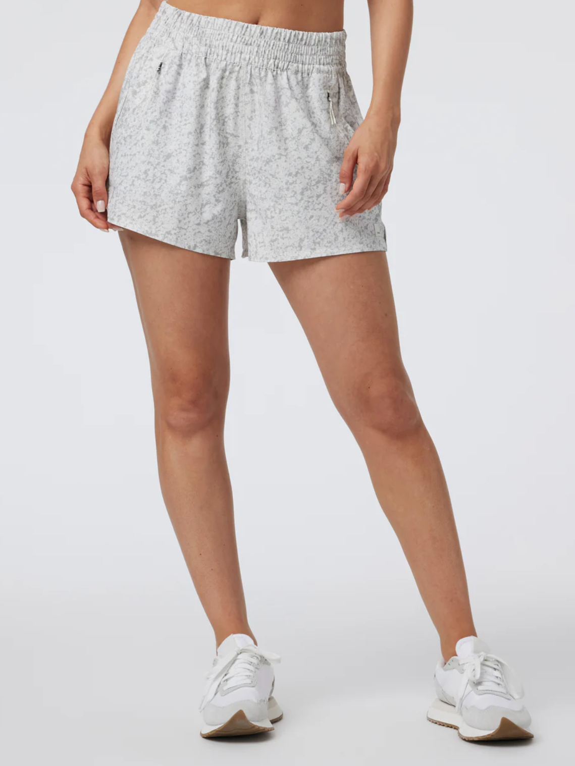 Meet in the middle with the Dash Shorts. Made with a lightweight stretch fabric with partly recycled materials, the Dash Shorts provide a mid-rise fit and a mid-length inseam topped with plenty of secure pockets and perforated panels for optimal breathability. The perfect women's running shorts.