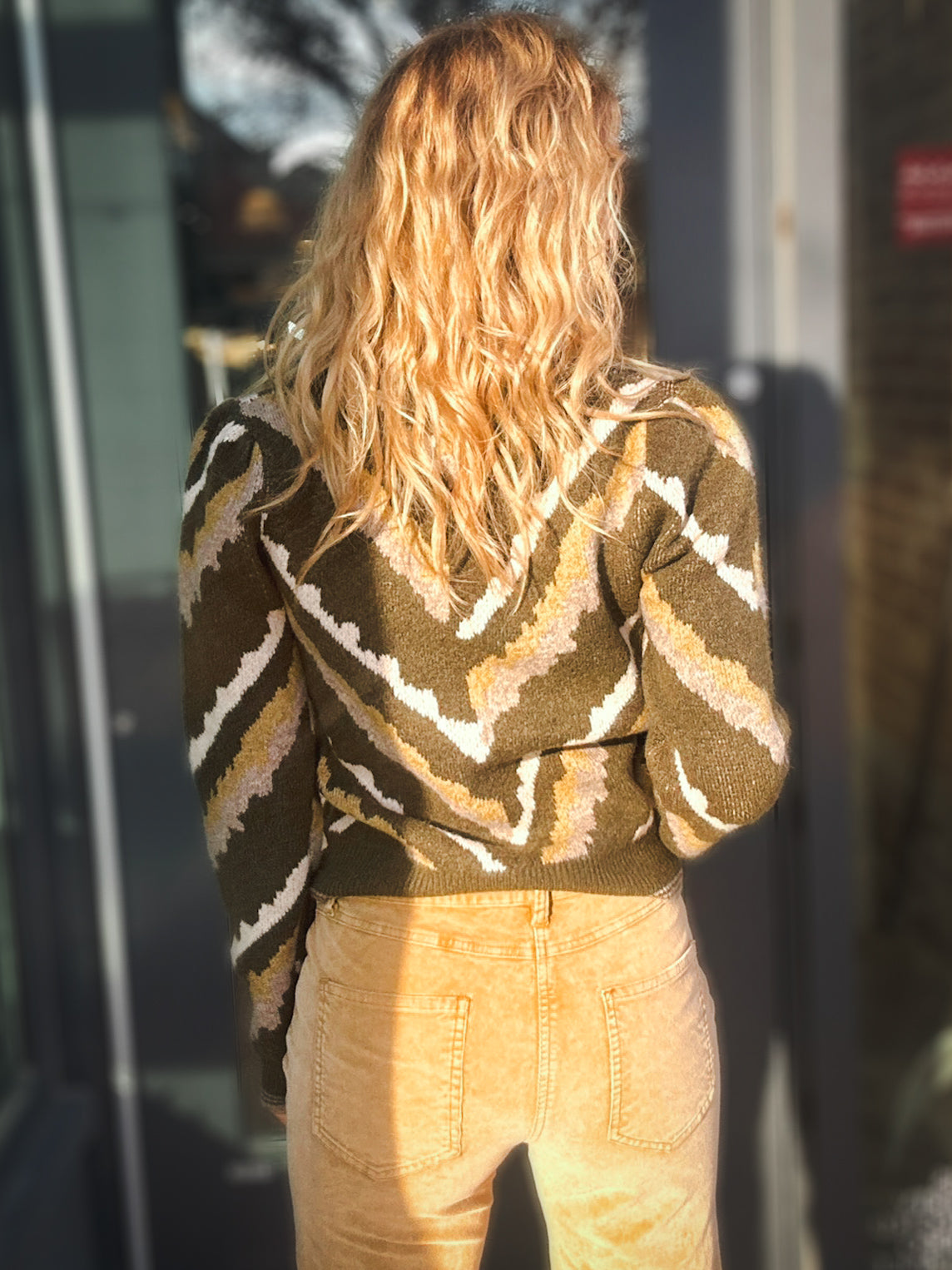 The Paloma Sweater is a crew-neck knit with a special jacquard pattern. It has a relaxed fit, crew neck and tipped edges. Wear with a simple pair of jeans and let the sweater speak for itself.