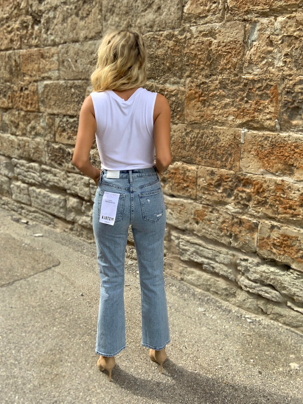 Pistola Lennon High Rise Crop Boot Denim in Rainer Distressed