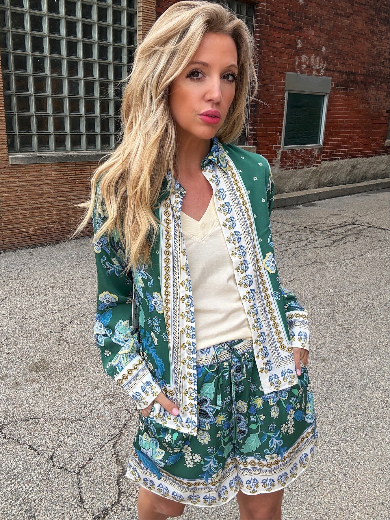 Elevate your denim wardrobe with this charming floral print button-down blouse. Featuring a classic collar and contrasting cuffs and button-down placket that add visual interest and dimension. The structured fit pairs effortlessly with your favorite jeans or denim skirts for a polished, versatile look that transitions from casual to dressed-up occasions.