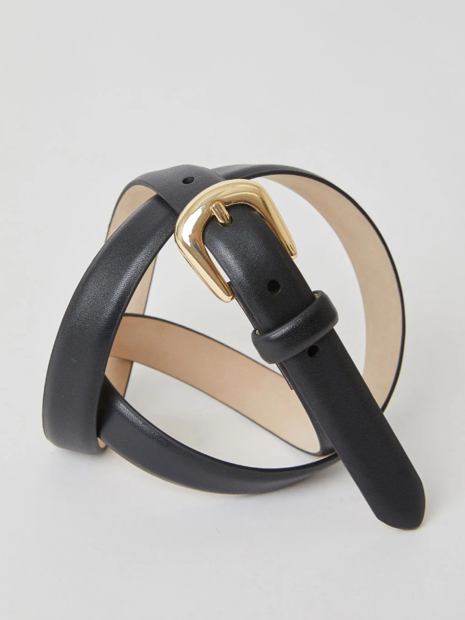 Designed to be a wardrobe staple, this classic skinny belt is made from genuine leather with a simple gold-tone buckle and subtle leather keeper. You'll wear this timeless hip belt for years to come.