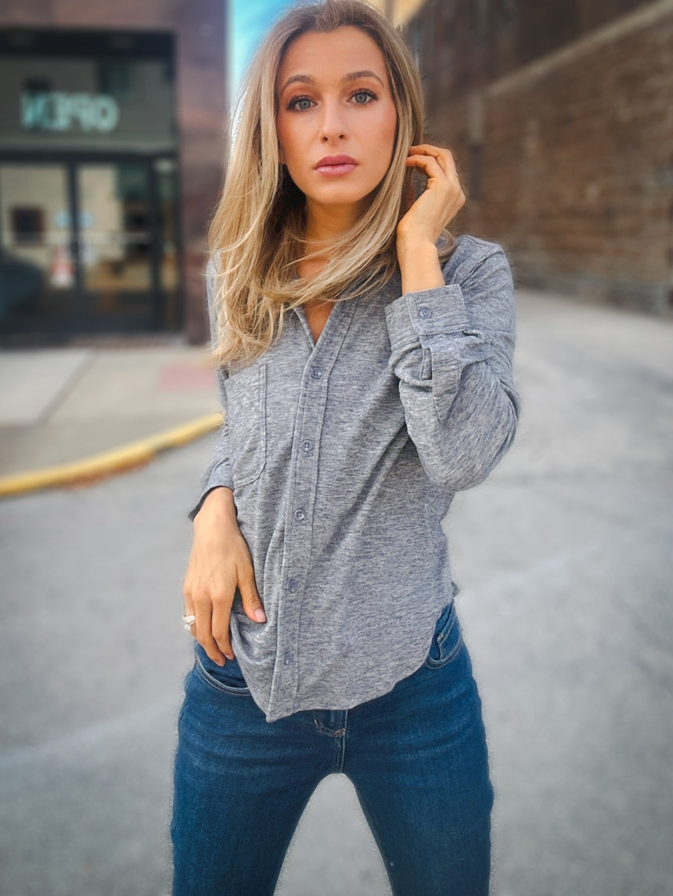 Elevate your everyday wardrobe with the Bobi Timeless Type Top, a versatile long sleeve button-front essential that effortlessly transitions from office to weekend. The crisp collared neckline and structured silhouette create a polished, put-together look that works with virtually everything in your closet. Whether you layer it under sweaters, wear it solo, or tie it at the waist for added dimension, this timeless piece delivers endless styling possibilities. Quality construction ensures durability through countless wears and washes, making it an investment piece you'll reach for season after season. The perfect foundation for building a refined, intentional wardrobe.