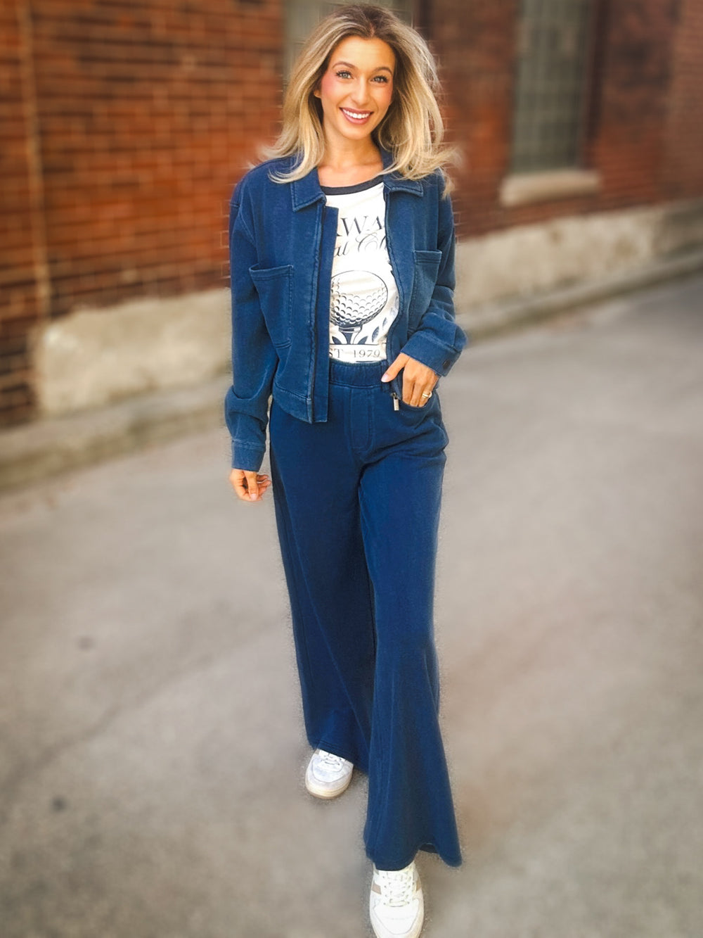 A modern take on a classic, this wide-leg pant is crafted from soft knit denim for a lived-in feel. The high rise and full-length cut make it an easy partner for everything from sneakers to heeled boots.