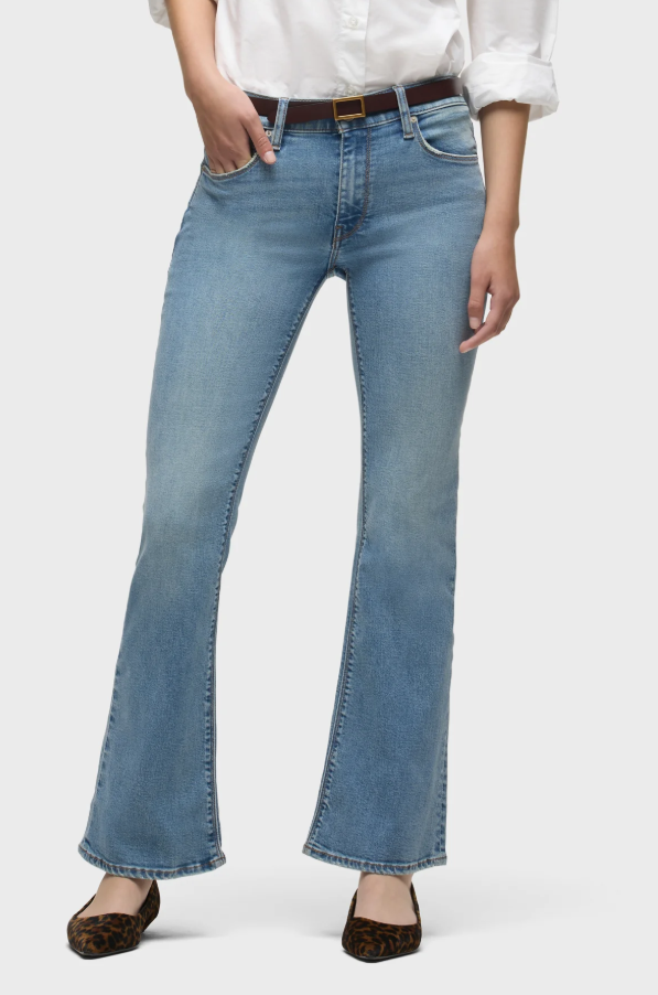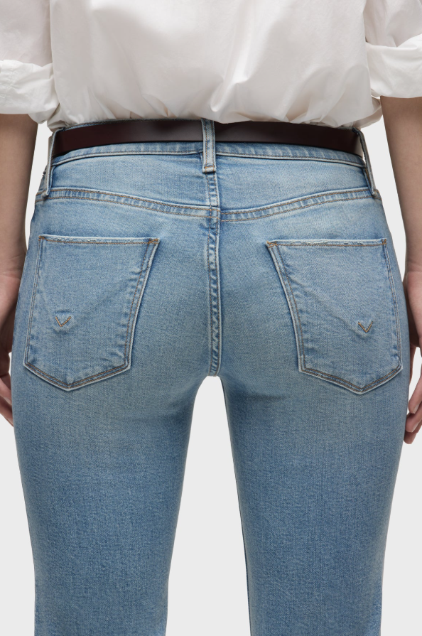 • Nico Mid-Rise Bootcut Barefoot Jean in Ballad is cut in a universally flattering silhouette from premium comfort stretch denim in a light blue wash. Designed to hit at the ankle bone, it has a 30" inseam and is finished with a clean hem and classic five-pocket detailing.