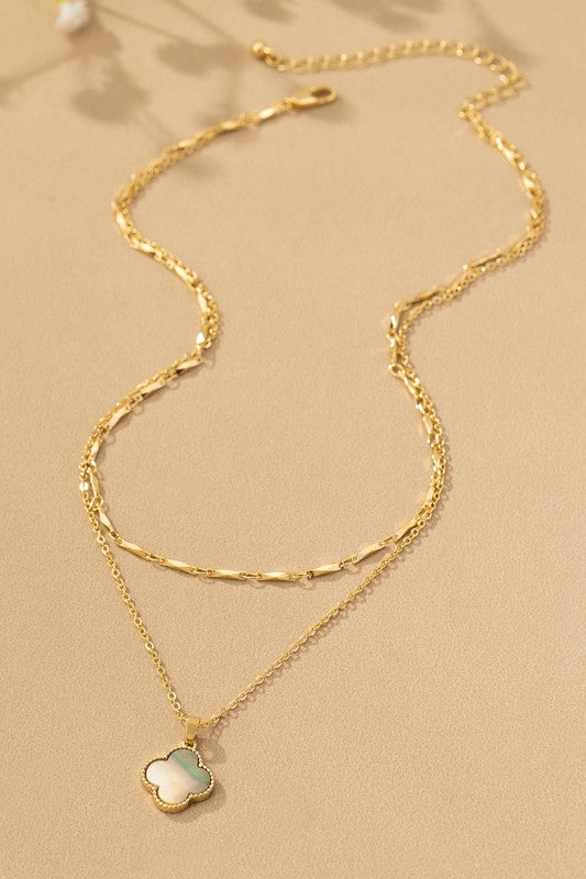 Elevate your style with this Double Chain Necklace featuring a unique two-row mixed chain design and a charming clover pendant. Perfect for layering or wearing alone, it adds a touch of elegance and personality to any outfit. Crafted to catch the eye, this necklace is a versatile accessory that complements both casual and dressy looks effortlessly.