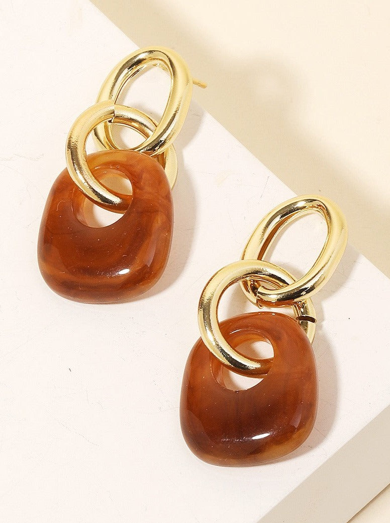 Elevate your style with our Geometric Glam Earrings. Made with a chic acetate chain, these drop earrings exude luxury and impeccable craftsmanship. Transform any outfit into a fashion statement with this glamorous accessory.