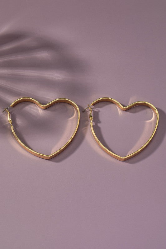 Wear your heart on your ears with our Golden Heart! These shiny and smooth metal hoop earrings feature a wide flat heart shape, adding a touch of love to any outfit. Make a statement and show off your inner beauty with these beautiful and unique earrings.