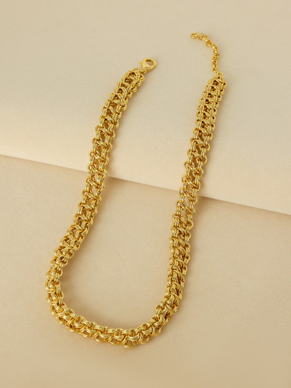 Elevate your style with this striking choker, crafted from a tightly woven chain dipped in 18K gold for a radiant, enduring shine. Its heavyweight design and polished finish deliver a luxurious, contemporary look that stands out effortlessly. Waterproof and tarnish-resistant, this piece combines bold elegance with lasting durability, making it the perfect statement accessory for any occasion.
