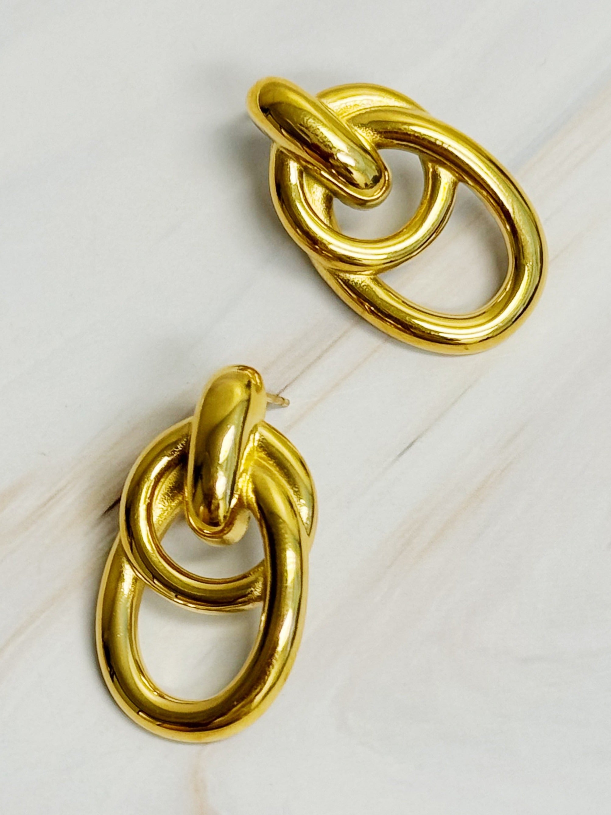 These unique Linked Rings Golden Earrings feature a stylish linked rings design with a touch of golden flair. Elevate any outfit with these eye-catching earrings that will add a chic and elegant touch to your look. Perfect for any occasion, these earrings are a must-have for any jewelry collection.