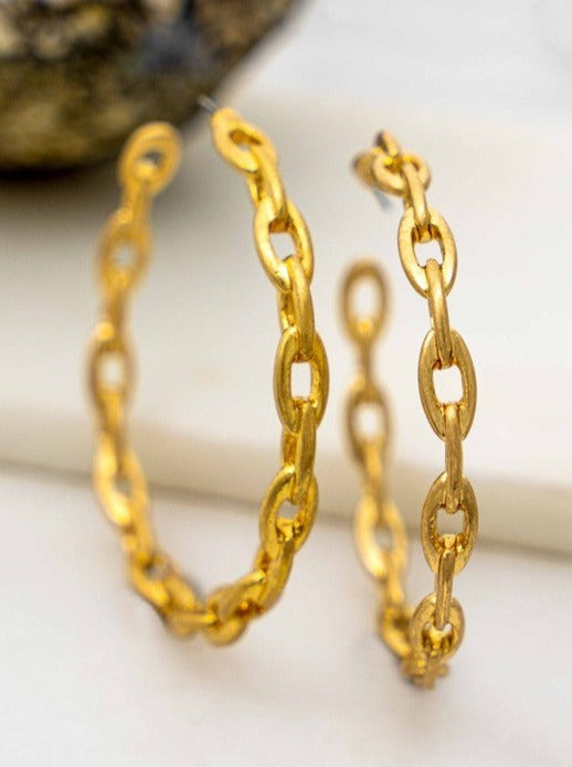 Add a touch of modern charisma to your style with our smooth and polished chunky chain hoop earrings. Made of high-quality alloy casting, these earrings are both stylish and durable. Elevate your look and show off your unique personality with these must-have accessories!