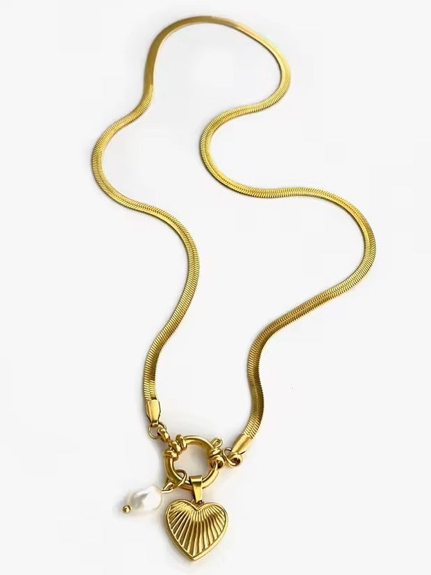 Elevate your style with the Seas of Love Necklace, featuring a delicate snake chain adorned with a charming shell heart and lustrous pearl pendants. This elegant combination captures the essence of the ocean’s beauty, making it the perfect accessory to add a touch of sophistication and romance to any outfit. Whether for everyday wear or special occasions, this necklace effortlessly enhances your look with timeless grace.