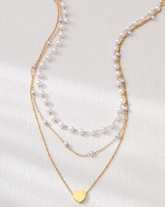 Elevate your style with the Pearl Layer and Gold Heart Charm Necklace. This elegant piece combines the timeless beauty of lustrous pearls with a delicate gold heart charm, creating a look that is both classic and modern. Perfect for layering or wearing alone, it adds a touch of sophistication to any outfit, making it an ideal accessory for everyday wear or special occasions. Embrace subtle luxury and let this necklace become your new favorite statement piece.