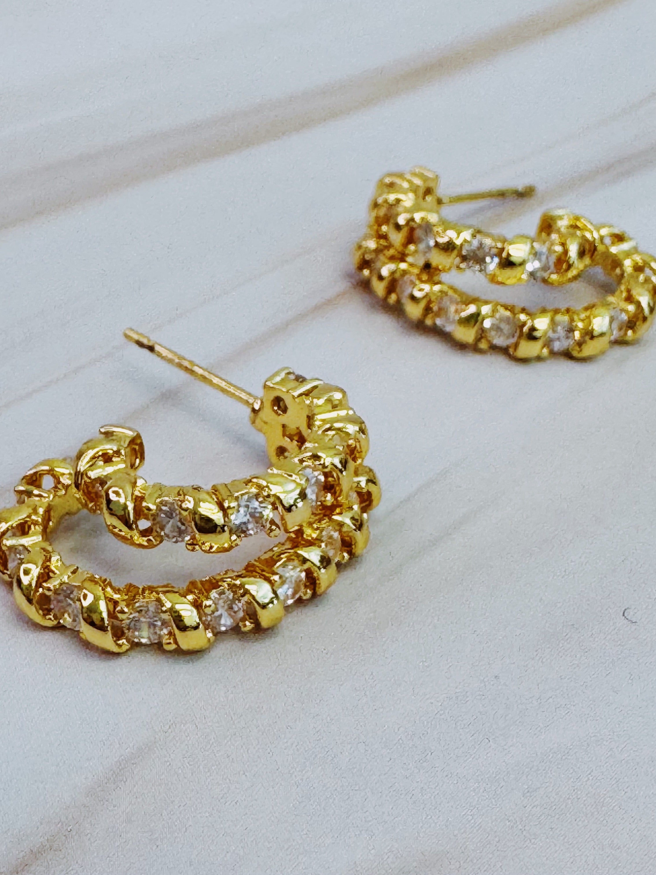 Add some shiny spirals and modern hoops to your ear game with these earrings! Perfect for any occasion, these sparklers will make you stand out in a crowd and add some bling to your style.