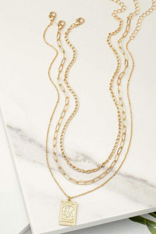 Elevate your style with the Tarot Ties Necklace set, featuring three mixed chain designs for a layered look that captivates. The centerpiece magician tarot card pendant adds a mystical touch, perfect for expressing your unique energy and intrigue. This versatile set effortlessly complements any outfit, making it a must-have accessory for those who embrace both fashion and fortune.