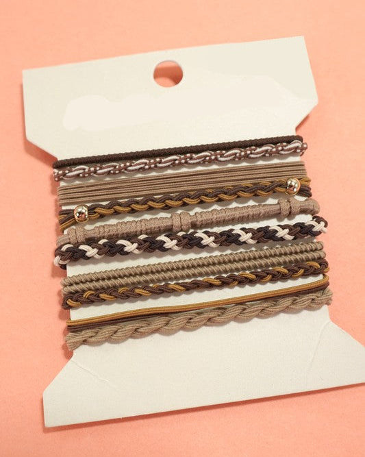 Elegant on your wrist, resilient for your hair! These bracelets offer dual-purpose versatility, functioning as both a stylish wrist accessory and a reliable hair tie." Boho Duo Hair Tie Bracelets, a perfect blend of fashion and function. Designed to be worn both on your wrist and in your hair, these bracelets combine bohemian charm with practical utility. Made from high-quality, stretchable material, they are gentle on your hair while adding a touch of boho elegance to any outfit. Whether you're securing your locks or accessorizing your look, these duo bracelets are your go-to for effortless style and comfort.