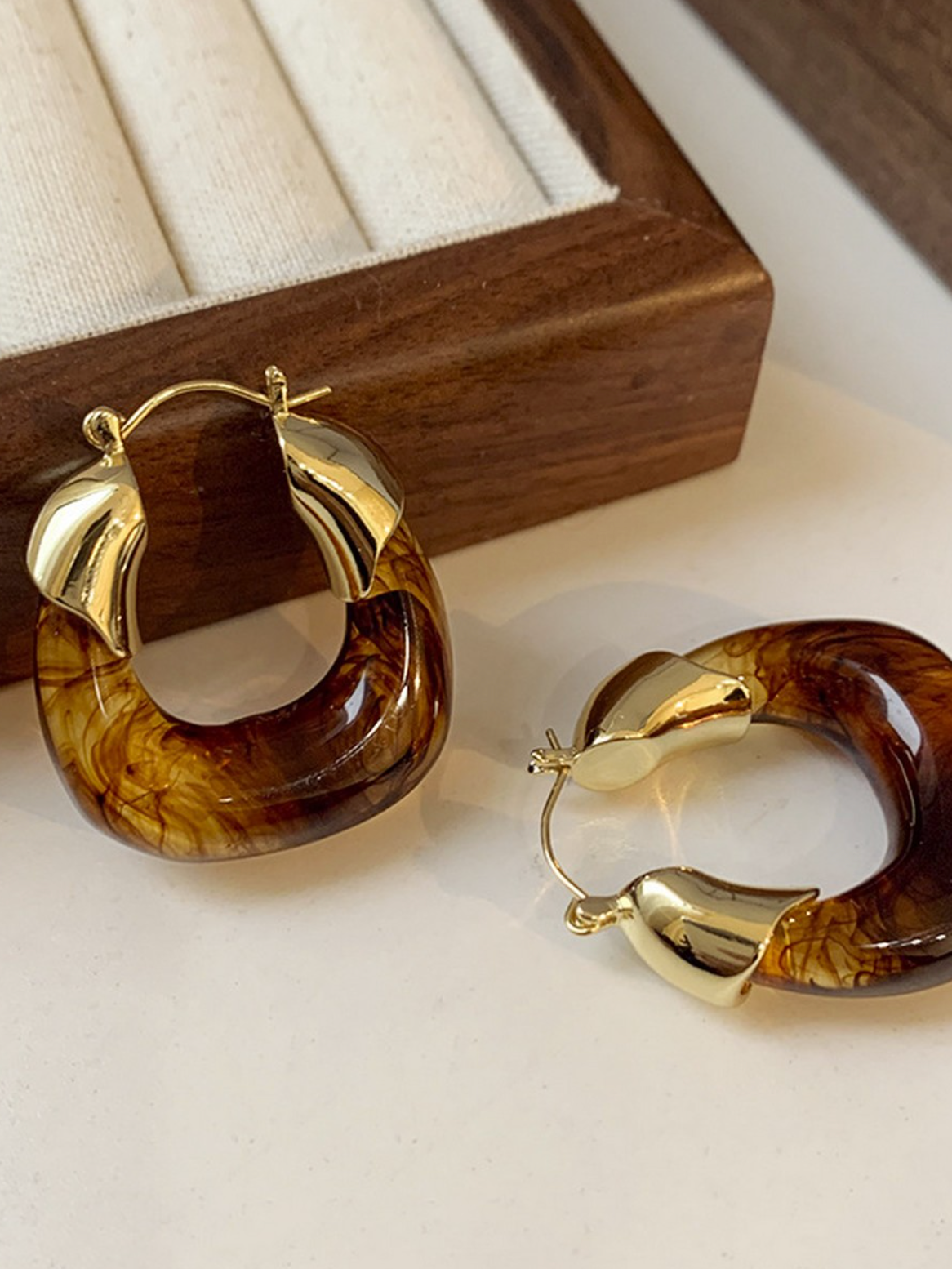 Indulge in a touch of nostalgia with our Vintage Vibes Earrings. These Retro Brown Light Luxury hoops are crafted with brown acrylic for a classic and elegant look. Elevate your style and make a statement with these timeless earrings.
