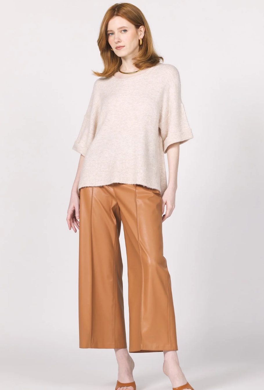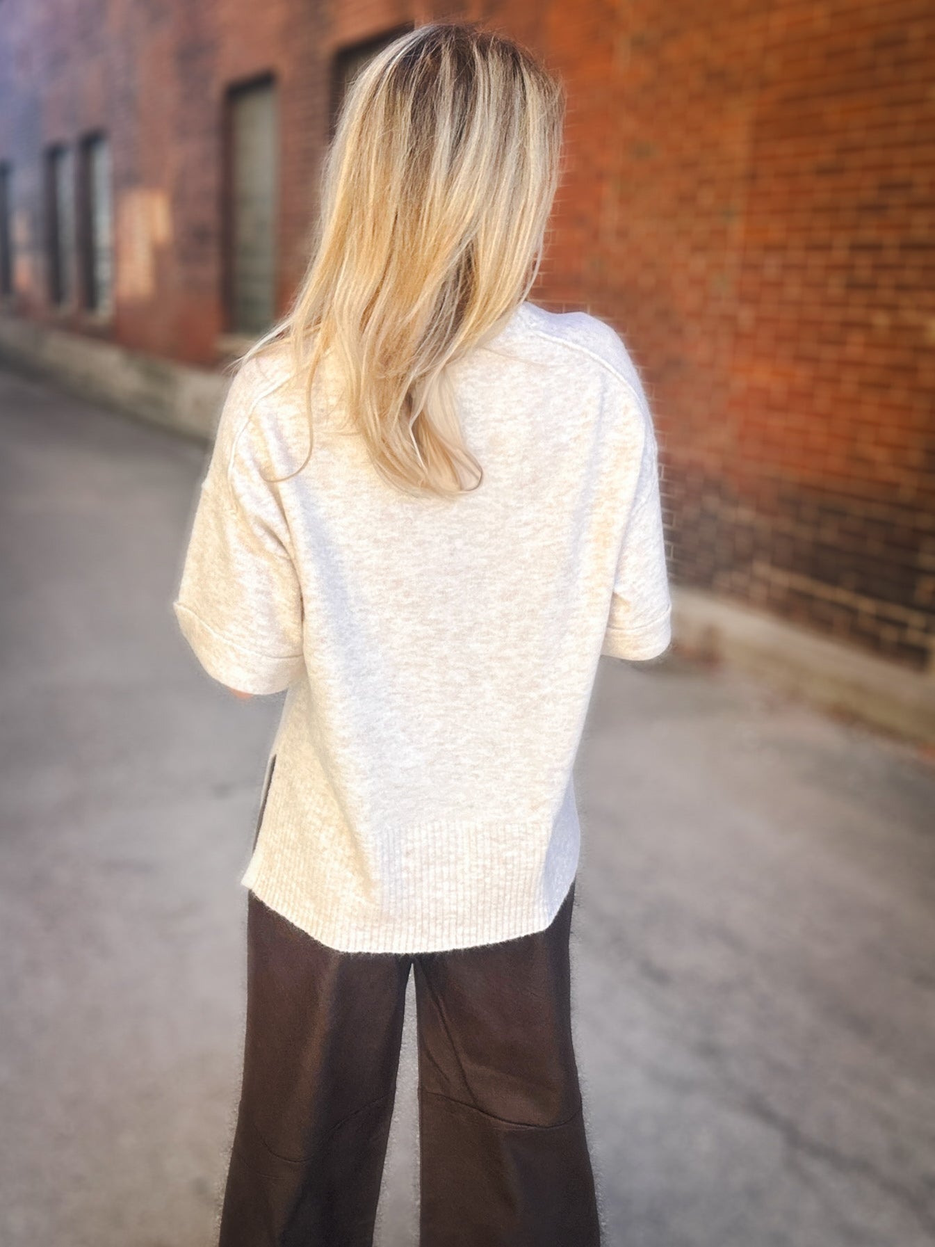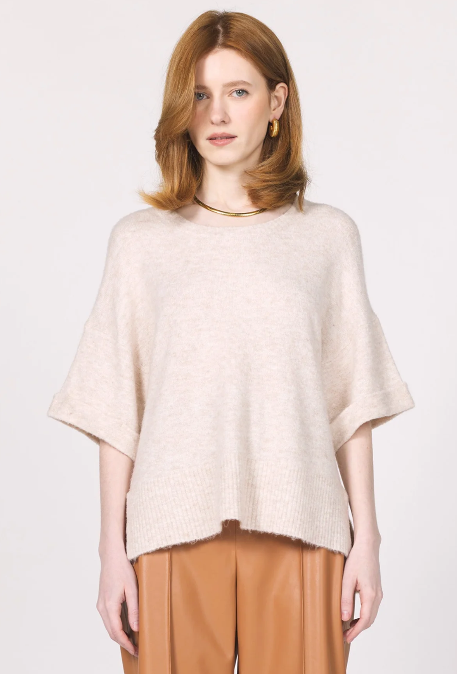 Timeless Catrina short sleeve crew neck sweater offers a refined blend of comfort and style. The seasonal hue adds a pop of vibrant elegance to your wardrobe. It's the ideal choice for layering or wearing alone, making it a versatile staple for any season. Perfect for casual or dressed-up occasions, combining simplicity with sophistication.