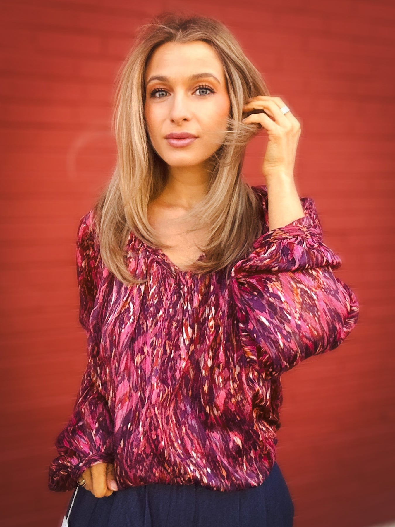 Elevate your wardrobe with the Dear John Piaf Blouse, featuring a flattering V-neck that enhances your neckline with effortless elegance. Crafted for both comfort and style, this blouse drapes beautifully to complement any outfit, making it perfect for day-to-night wear. Its versatile design lets you dress it up or down, ensuring you always look polished and confident. Experience the blend of sophistication and ease with this must-have blouse.