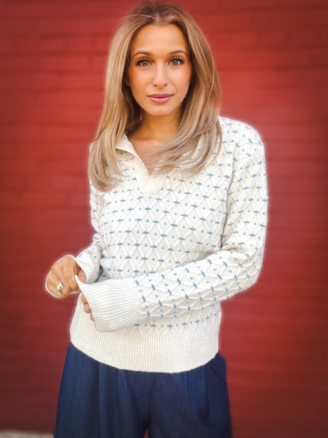 Elevate your wardrobe with the Heartloom Farrow Sweater—a perfect blend of cozy warmth and polished style. This long sleeve, collared sweater exudes timeless elegance while keeping you comfortably snug on cooler days. Its refined collar adds a sophisticated touch, making it ideal for both casual outings and office-ready looks. Embrace versatile layering with this effortlessly chic piece that transitions seamlessly from day to night. Stay stylish and comfortable with the Heartloom Farrow Sweater, designed to enhance your everyday ensemble with grace and ease.