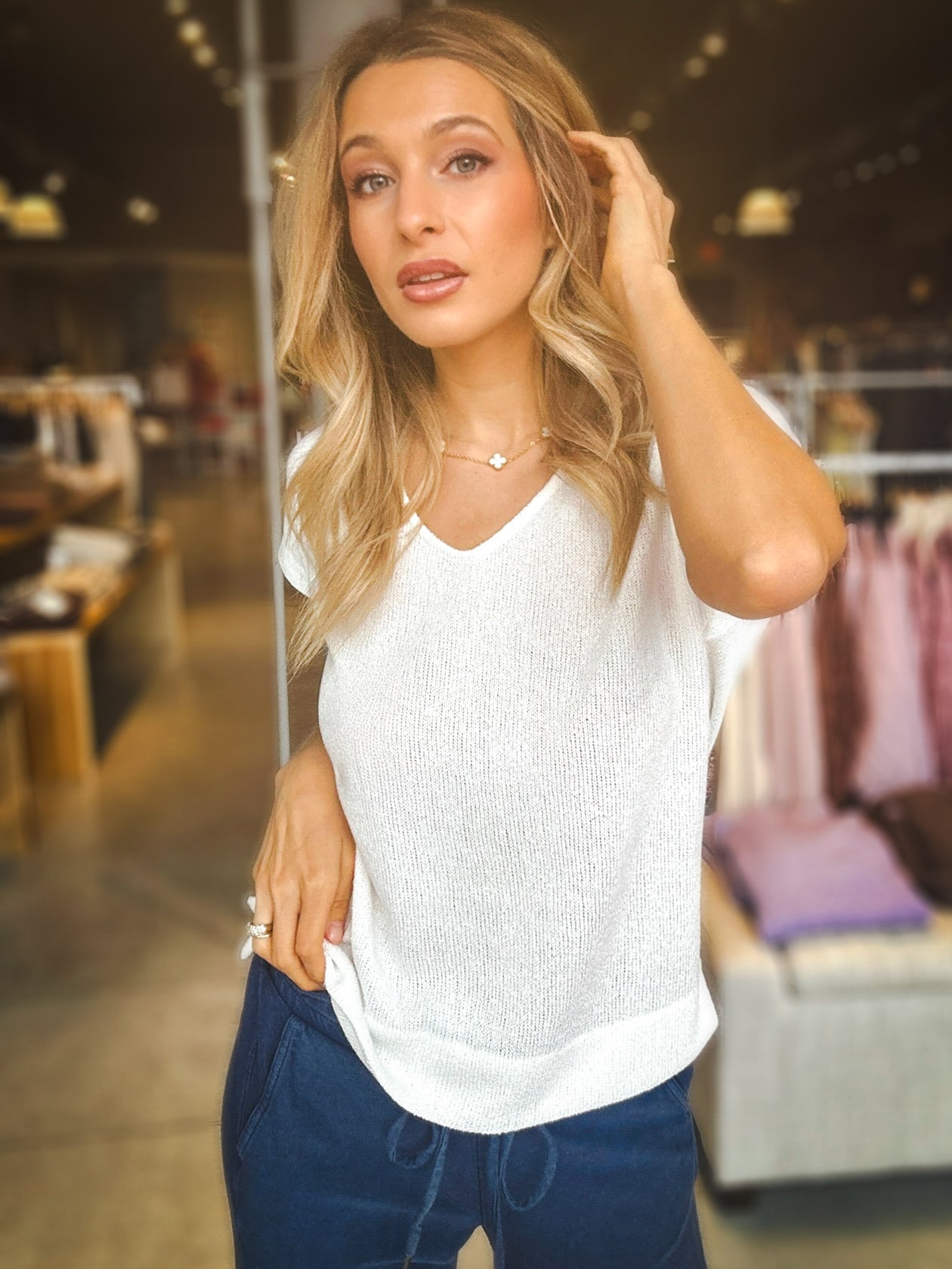 Elevate your everyday wardrobe with this sophisticated wide v-neck top that proves basics don't have to be boring. The generous neckline creates a flattering silhouette while maintaining an understated elegance that works seamlessly from office to weekend. Crafted with quality construction, this versatile piece layers beautifully and pairs with everything in your closet. A refined essential that transcends the ordinary and becomes the foundation of effortless, polished style.