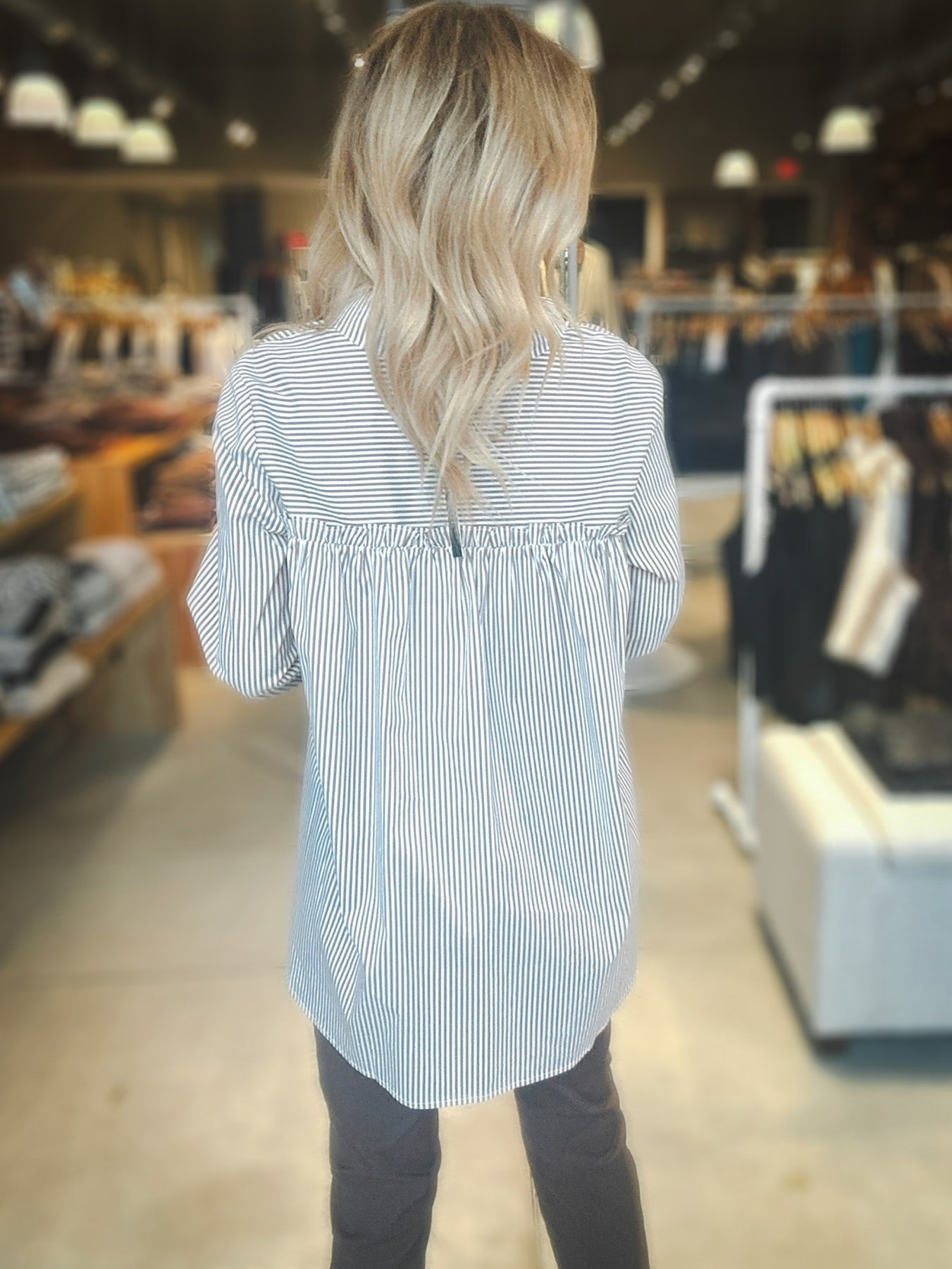 Elevate your everyday wardrobe with the Renuar Confident Cues Blouse, a sophisticated buttondown that combines timeless style with modern polish. Featuring crisp vertical stripes and a classic collared neckline, this piece offers versatile elegance for any occasion. The button cuff design ensures a refined fit, while the contrasting striped cuff adds a subtle touch of visual interest that sets it apart. Perfect for layering or wearing solo, this blouse transitions seamlessly from office to weekend, giving you the confidence to command any room.