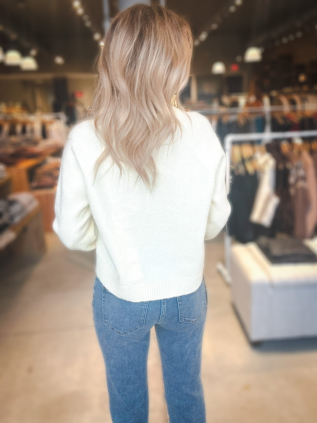 This textured cotton-blend sweater has that soft, airy feel you’ll never want to take off. The relaxed silhouette and subtle high-low hem make it the perfect transitional layer for breezy days and laid-back nights.