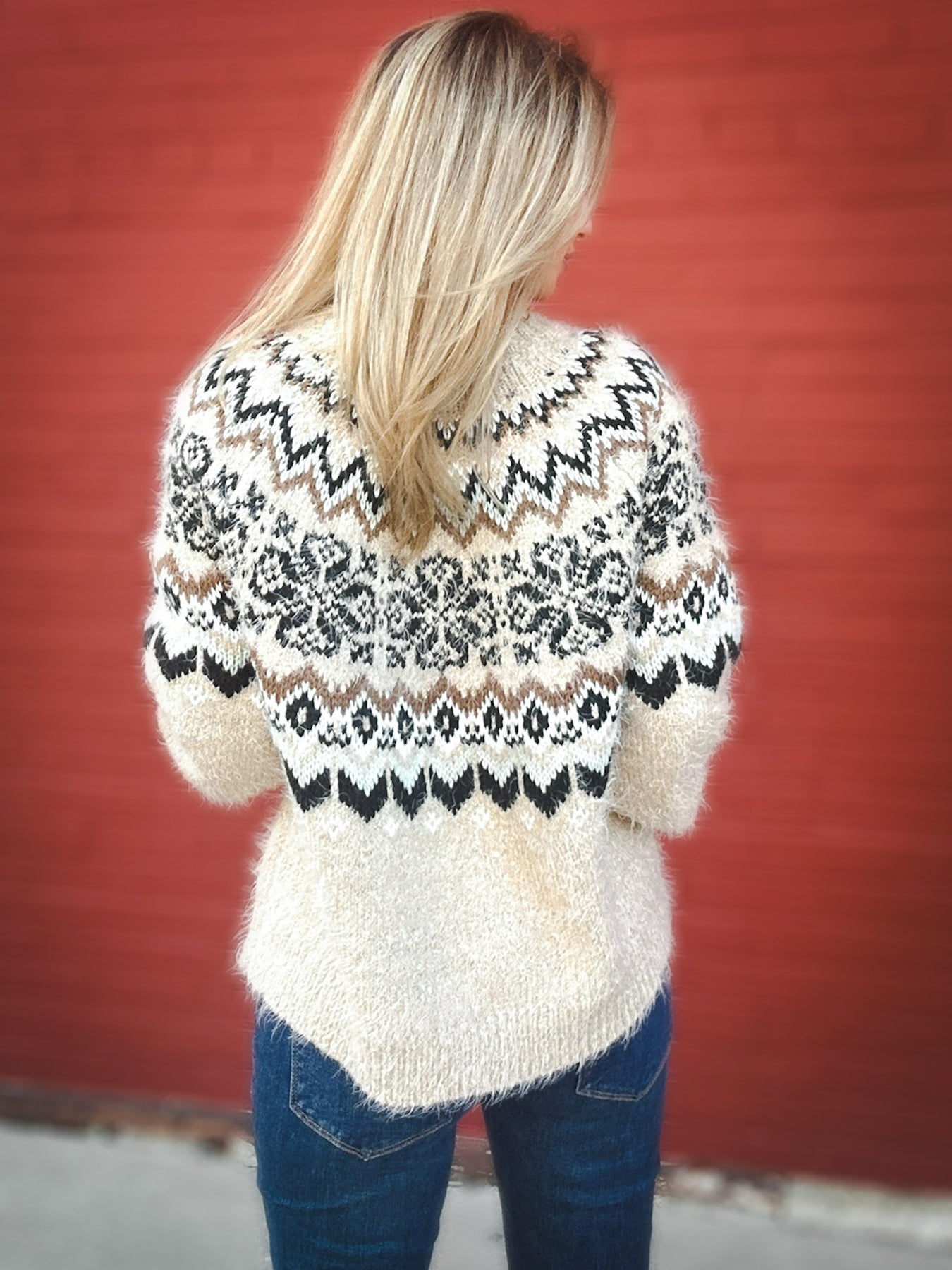Embrace cozy style with the Z Supply Kenaby Fair Isle Sweater. This long-sleeve sweater features a classic Fair Isle print that adds timeless charm to your wardrobe. Crafted for comfort and warmth, it’s perfect for layering on chilly days while making a stylish statement. Elevate your everyday look with this versatile piece that pairs effortlessly with jeans or skirts, keeping you snug and chic throughout the season.