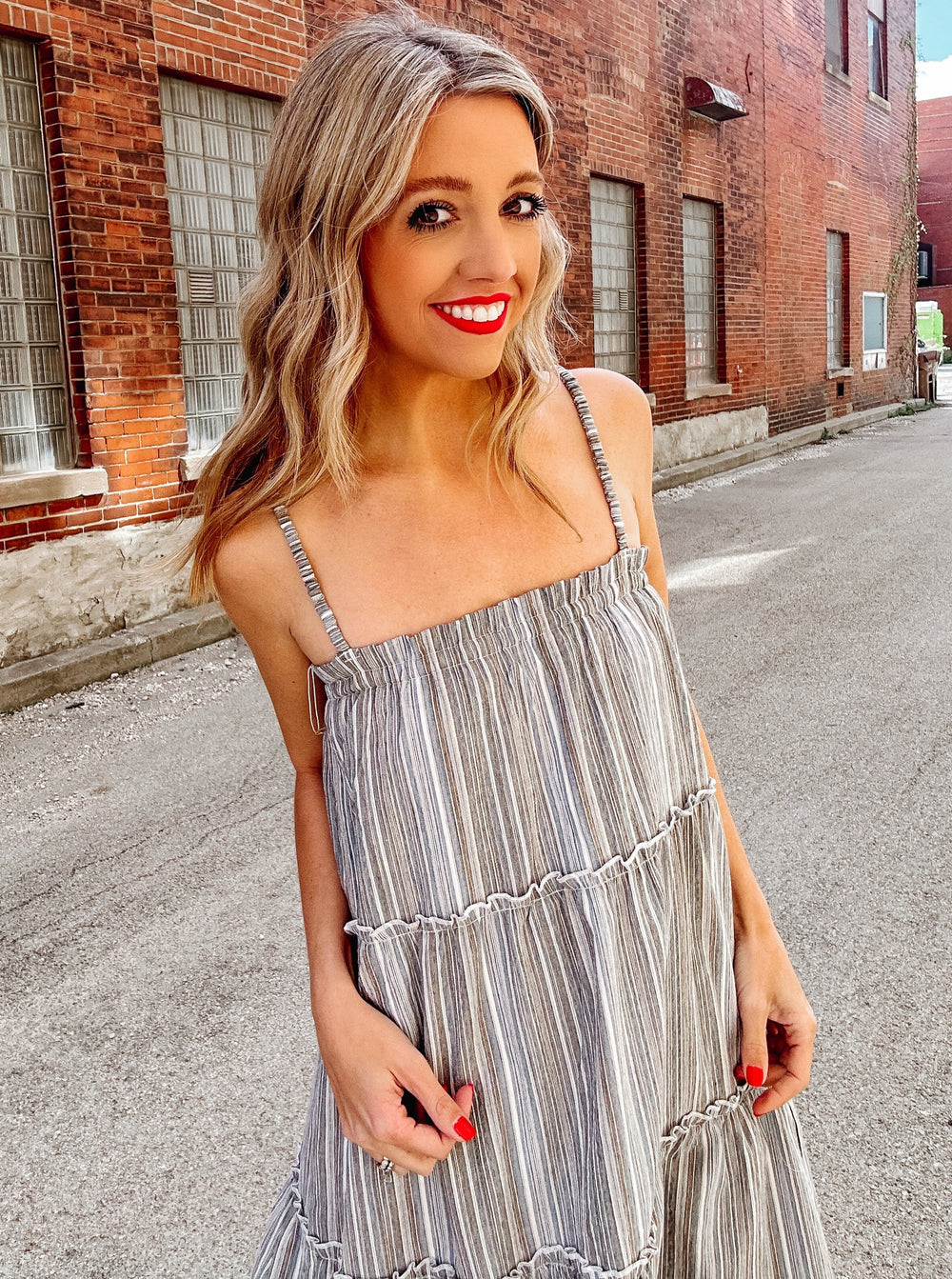 Stroll the beachfront in breezy style in the Bishop + Young Endless Appeal Dress! Airy, linen-blend fabric (with a charming striped pattern throughout) shapes this dress that has spaghetti tank straps and a straight ruffled neckline. Tiered babydoll skirt adds so much charm to an already charming dress.