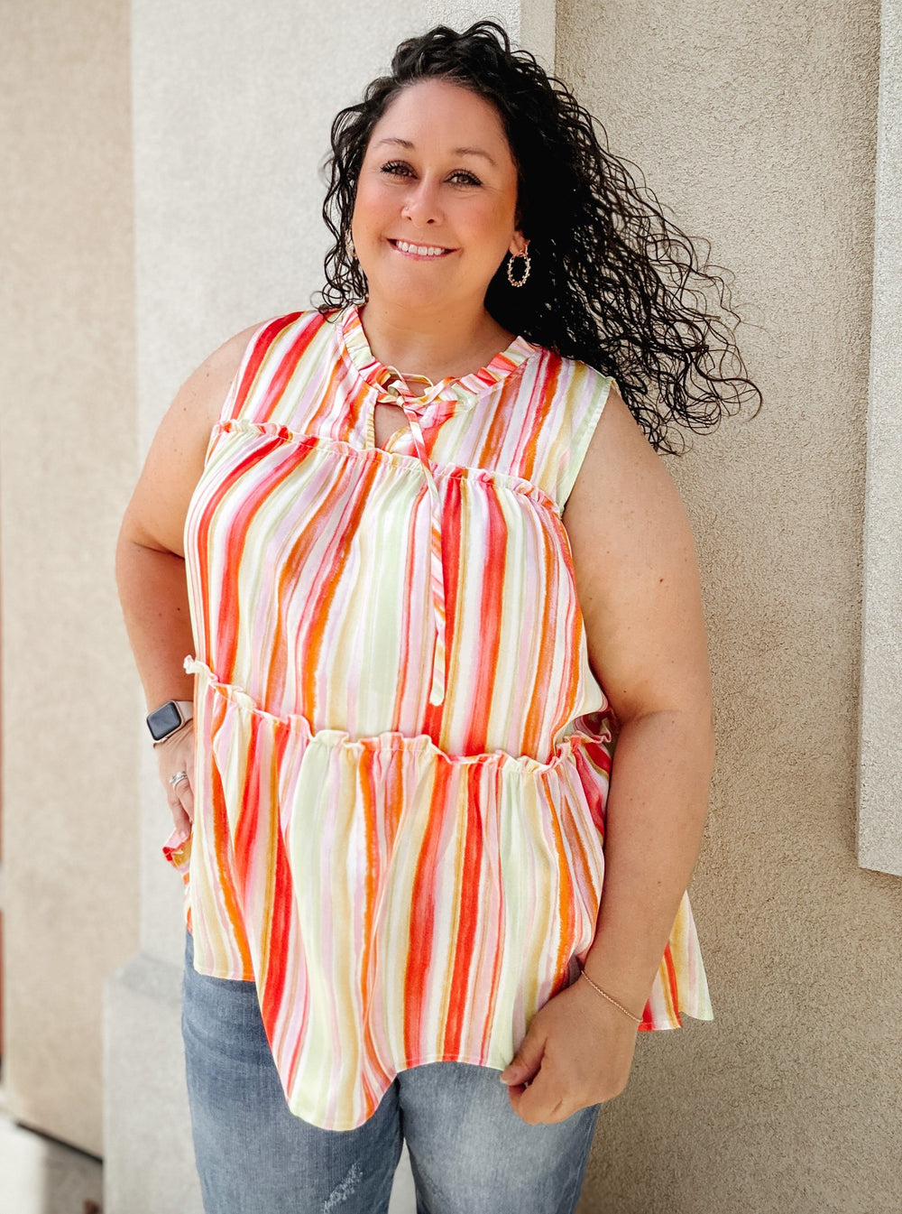 Keep your look chic and a little cheeky in the Flirtatious Ways Top! Lightweight, subtly textured fabric boasts a summery print, shaping a flowy bodice with tiered ruffles.