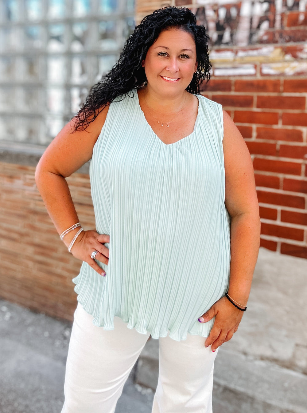Make your mark in the Posh Demeanor Tank! Whether you desire a dressed-up or dressed-down look, this pleated, v-neck tank with wide straps has got you covered. With its fun color and versatility, it'll hit all the right notes! Fabric: 100% Polyester