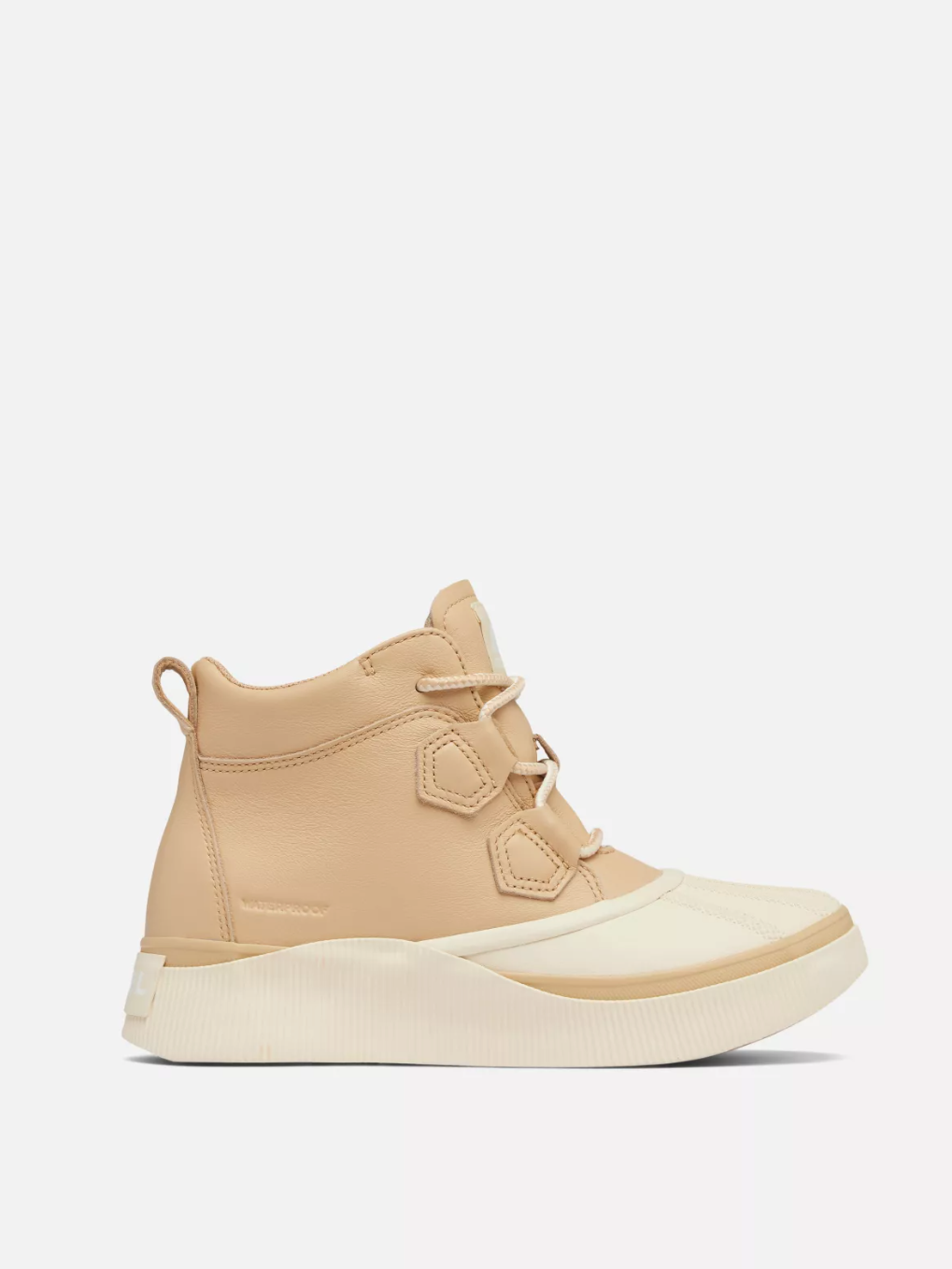 - UPPER: Available in waterproof full grain leather and suede upper or waterproof felt and suede upper. Heel pull tab. Lace closure. Textile lining. Waterproof bootie construction. Waterproof vulcanized rubber shell. Laces are not waterproof.