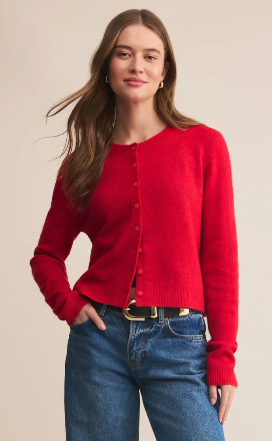 This relaxed crewneck cardigan is made from cozy sweater yarns with an easy button-up front that’s perfect for layering. Whether tossed over a tank or worn solo, it’s the ideal go-to for cozy, casual days.