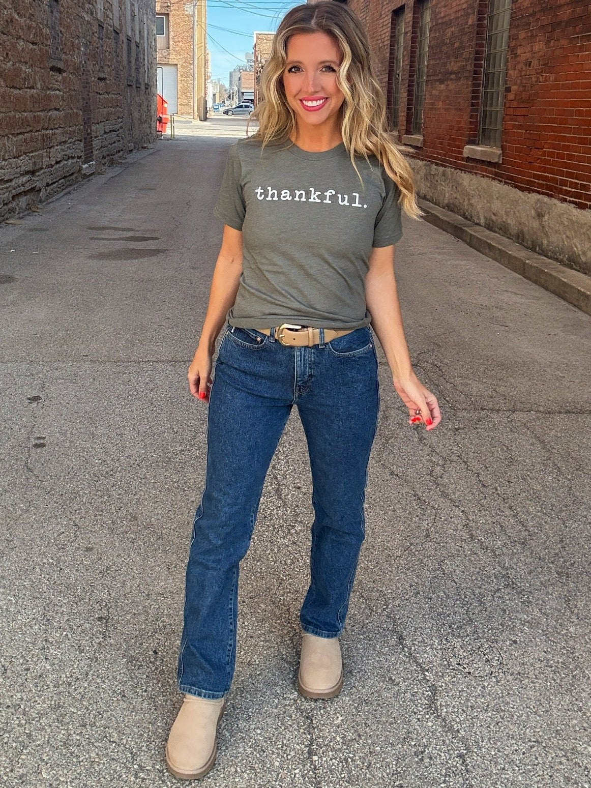 Say "Thanks" with this awesome Unisex Thankful Graphic Tee! Its soft, comfy material and short sleeves make it the perfect choice for cool autumn days. Plus, you'll look totally Stylish and Grateful!