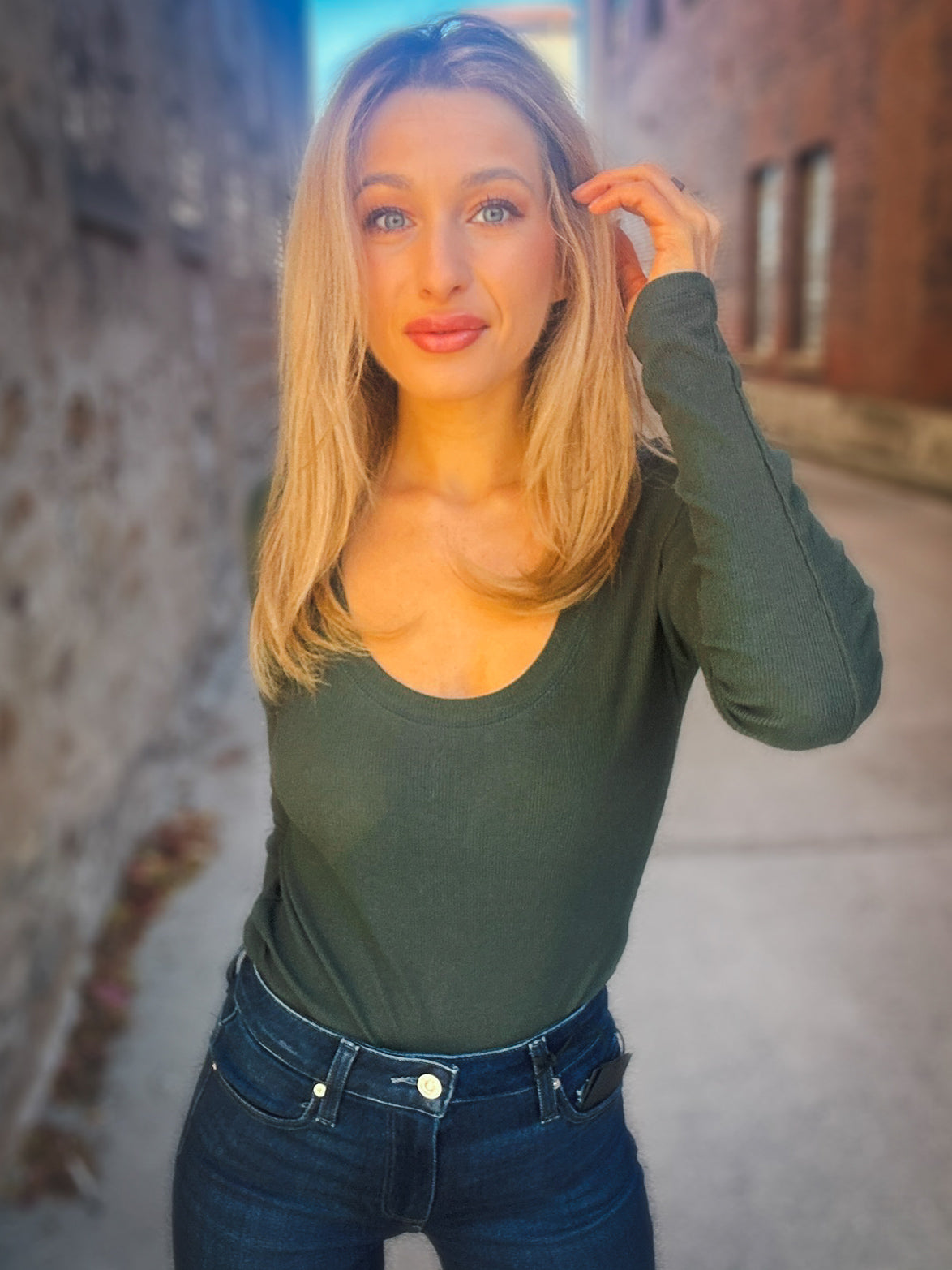 It's all sleek lines and elevated feels with the Sirena Rib Long Sleeve Tee. This perfect fitted layering piece can be worn with anything, tucked or untucked.
