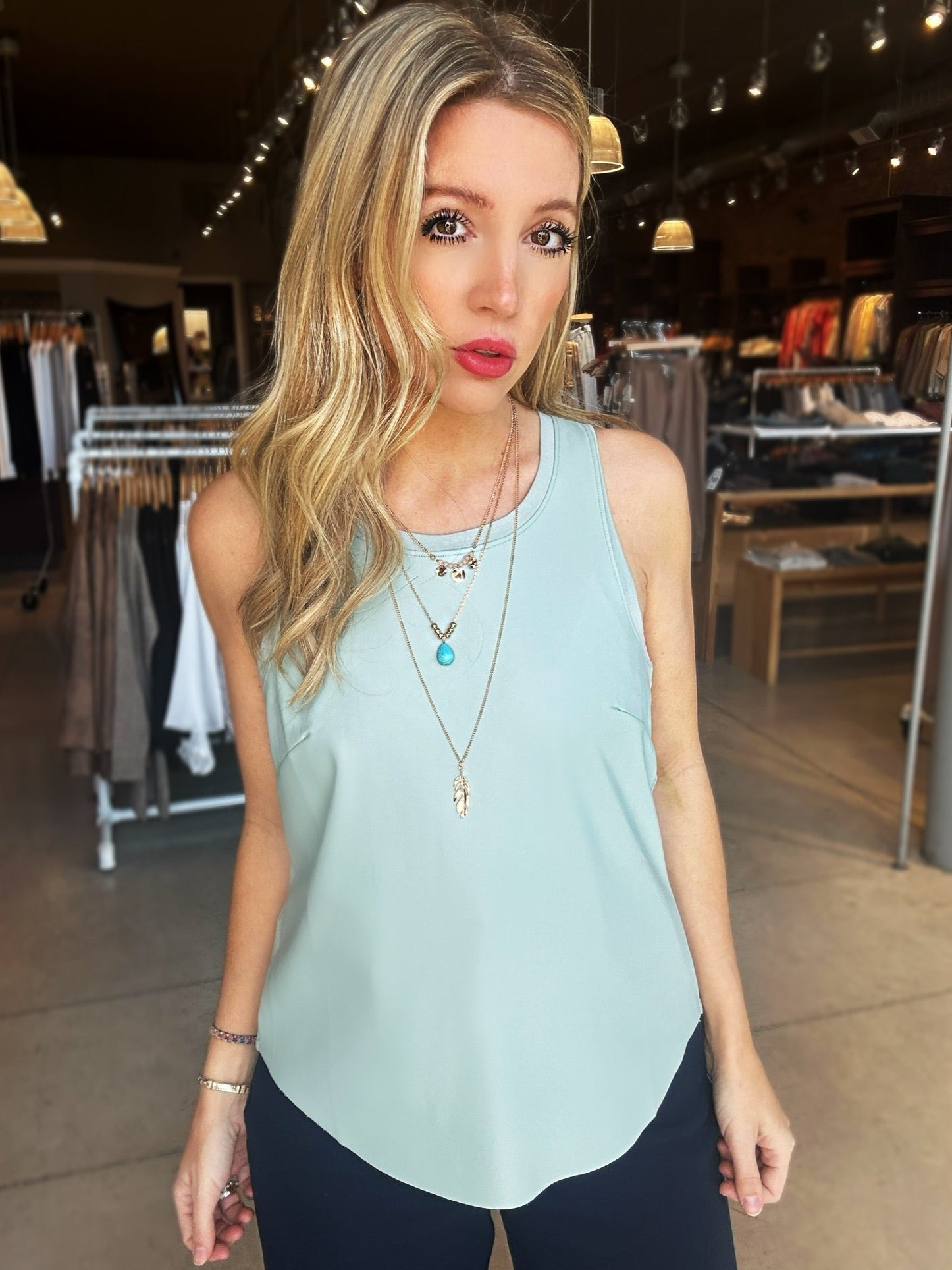 Carmela faux leather tank featuring a stylish curved hem and a contrast back design. This versatile piece combines comfort and trendy aesthetics, making it an ideal addition to your wardrobe for any occasion. Perfect for layering or wearing solo, this tank will effortlessly elevate your look.