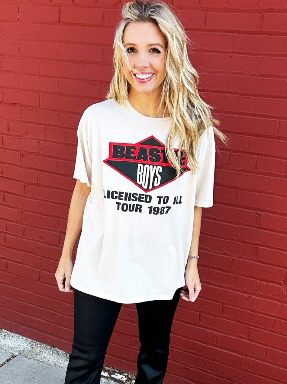 Experience the iconic Beastie Boys Licensed To Ill Tour of 1987 with this tee! Featuring original merchandise, this shirt is sure to inspire nostalgia and passion for the legendary band. Add it to your collection and relive the energy and excitement of their unforgettable tour.