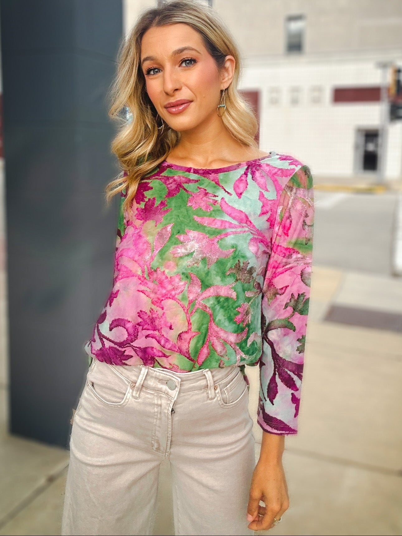 Elevate your casual wardrobe with the Karen Kane Daydream Magic Top. This versatile piece features a flattering boat neckline and 3/4 sleeves on a luxurious burnout knit fabric. The eye-catching tie dye print adds artistic flair while the relaxed fit and shirttail hemline ensure all-day comfort. Perfect for creating effortlessly stylish looks that transition seamlessly from day to evening.