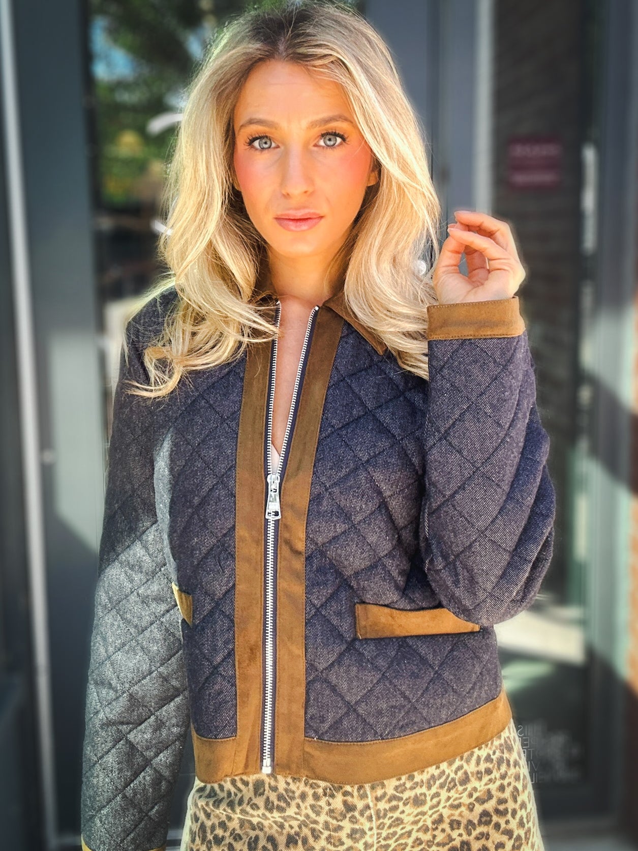 Meet the Block Party Bomber—your new go-to statement layer for chilly days and effortless style. Designed with bold color blocking and cozy quilted texture, this jacket features a structured collared neckline, full-zip front, and that borrowed-from-the-boys silhouette you’ll want to wear on repeat. The perfect balance of sporty and elevated, it adds instant attitude to everything from lived-in denim to sleek joggers.