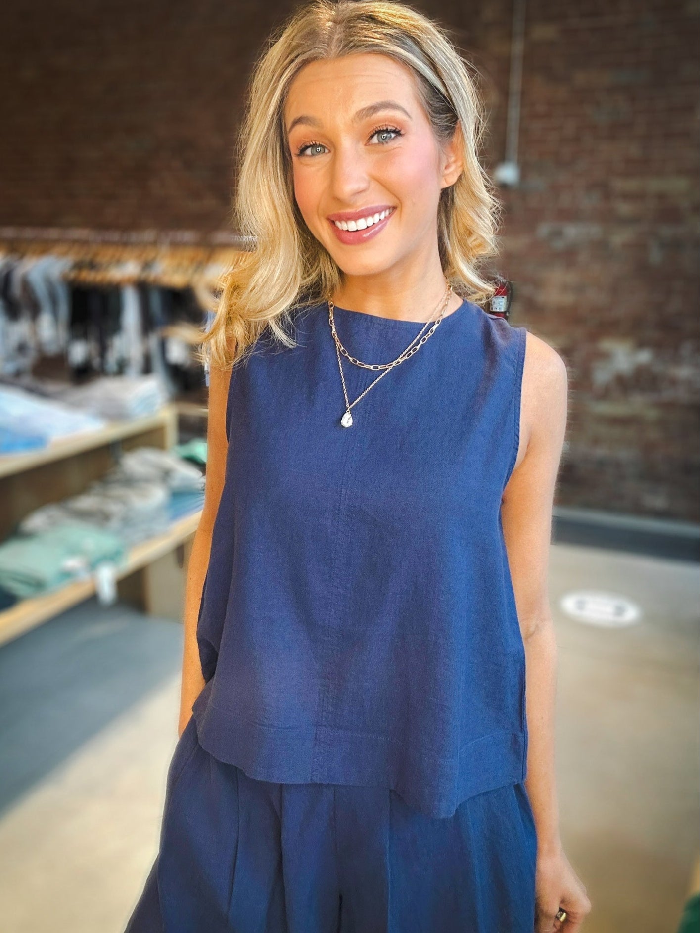 The Velvet Heart Bora Top delivers understated elegance with its sleek sleeveless design and sophisticated monochromatic buttons. These thoughtfully placed details create a streamlined silhouette that flatters your figure while offering versatile styling options. Perfect for both professional settings and casual outings, this essential piece will quickly become your go-to for effortless, polished looks that command attention without trying too hard.