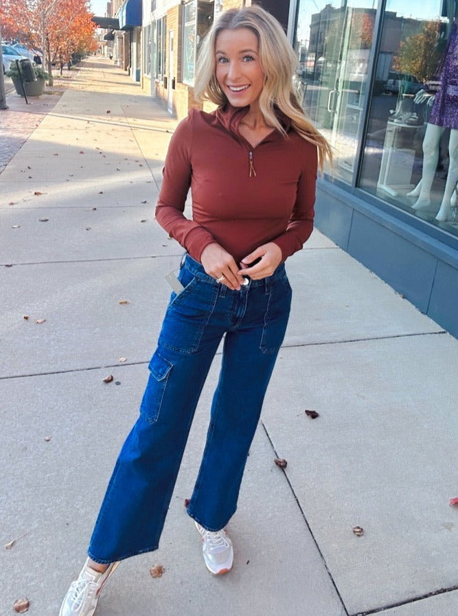 Feelin' Free Dark Wash Wide-Leg Denim Jeans