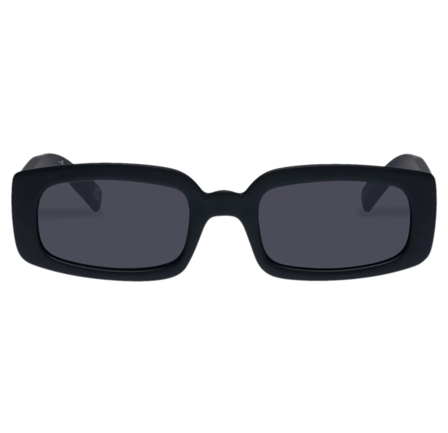 Designed with narrow proportions and wide fit for all face sizes, our DYNAMITE rectangular frame sunglasses are a wardrobe staple for both guys and girls. Featuring a classic noughties-inspired look, this unisex sunglass features discreet Le Specs metal stud detailing on both temples.