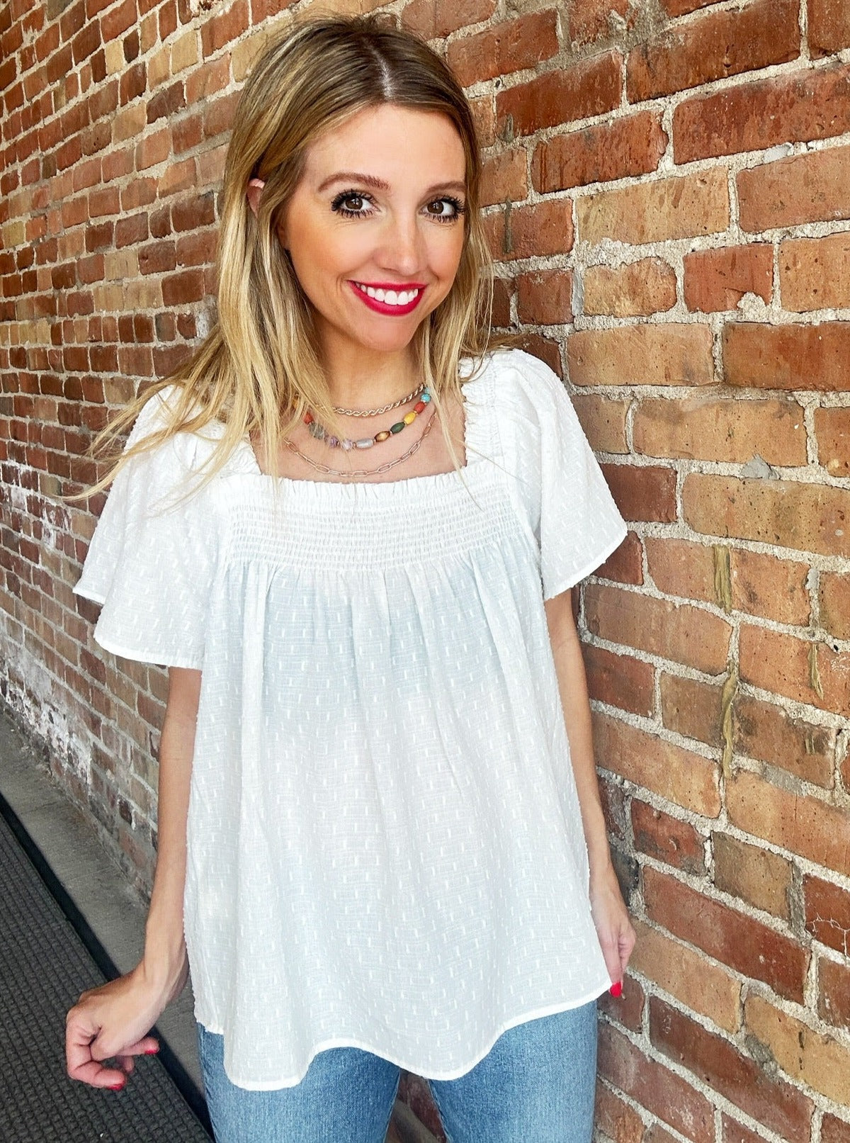 The Leave You Speechless Square Neck Top is sure to become a go-to for all your cutest outfits! Lightweight cotton fabric shapes ruffled sleeves that support this babydoll-style top that has a flounce hem with textured details and square smocked neck.
