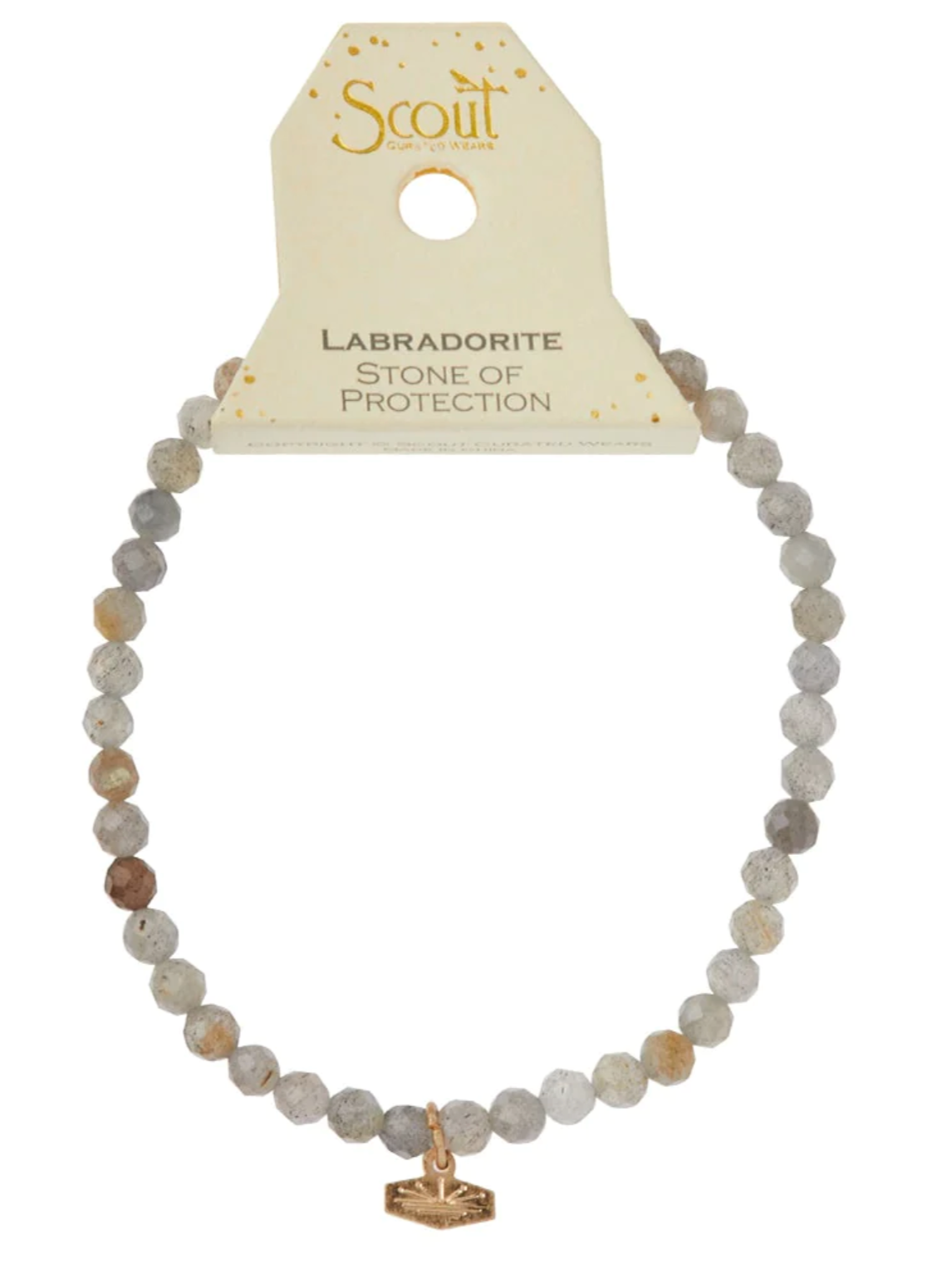 Faceted semi precious gemstones align as little luxuries on this stunner. Elevate any stack and create looks with unique intentions. Each bracelet includes a mini charm with the Scout logo on the reverse side.
