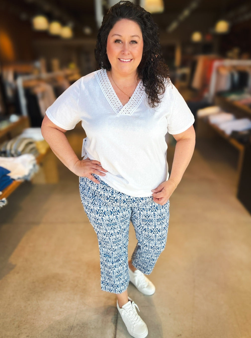 Elevate your everyday wardrobe with our Tribal Darling Energy Top! This v-neck short sleeve top features a unique crochet detail at the neckline, adding a touch of charm and energy to your style. Perfect for those who want to stand out and make a statement with their basics!